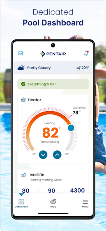 Stay smart, connected and protected with the Pentair Home app and range of connected ppol and home water management devices. Get instant status updates, remotely monitor all your Pentair connected equipment, and peace of mind—anytime, anywhere.