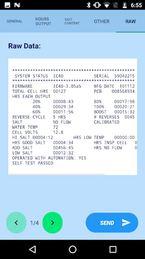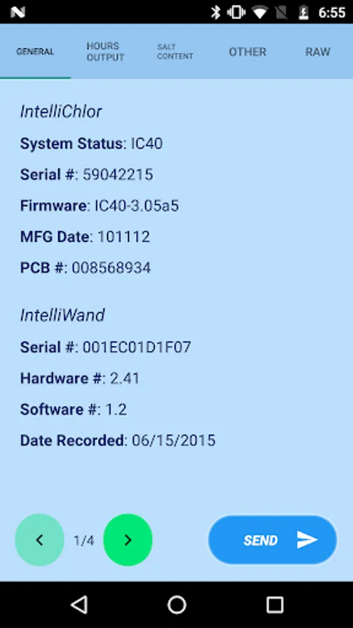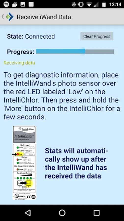 App retrieves IntelliChlor diagnostic report via Bluetooth Low Energy device and generates a report which can be sent via email.