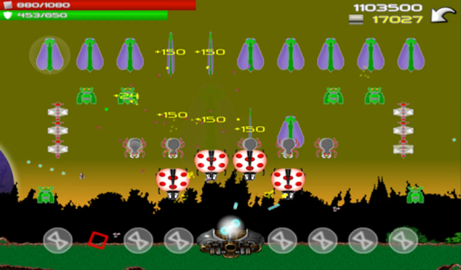There are a lot of enemies, weapons, defensive systems and extra bonuses.