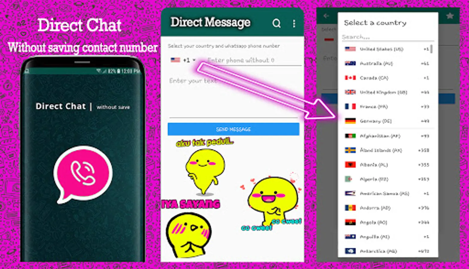 WhatsApp Direct is a useful utility for WhatsApp directly without saving unknown numbers. Direct message supports entry of mobile number as well as copy paste from call log facility to enter mobile number.