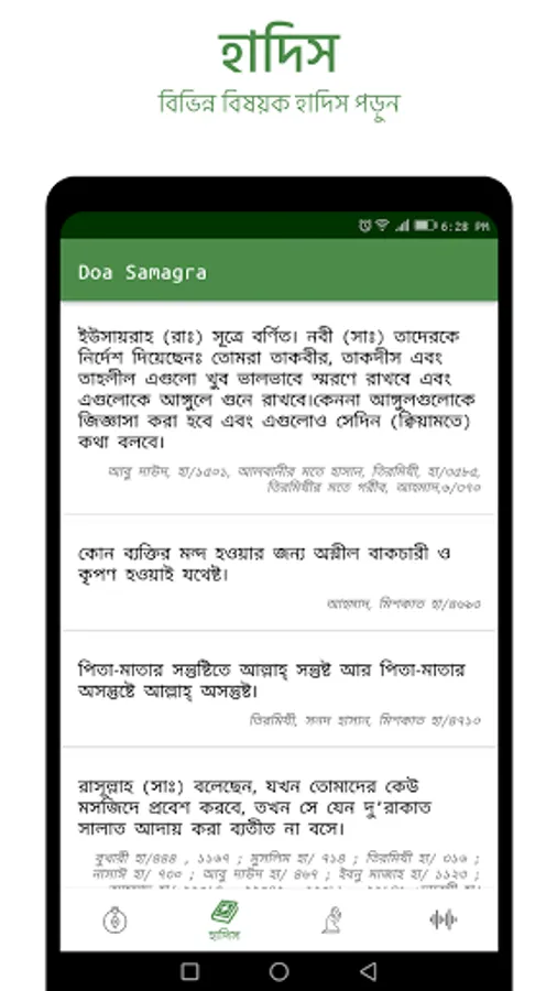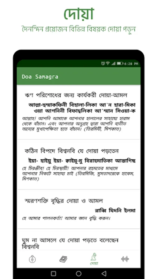 Dua Shomogro is a free app which contains, Daily Amol, Hadith, Kibla Compus and small Surah for salah.