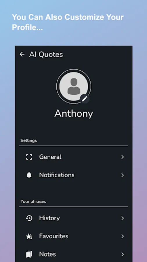 The app’s AI is not only going to show you good quotes but its smart and good-looking UI organizes in a very friendly way all your phrases so that you can easily get them whenever you want. You can easily access your history, favorite quotes, and notes.