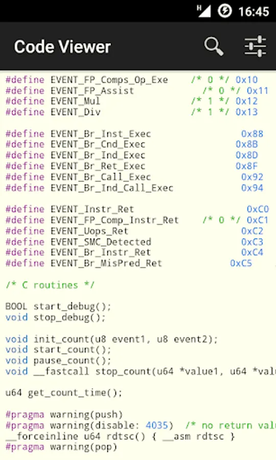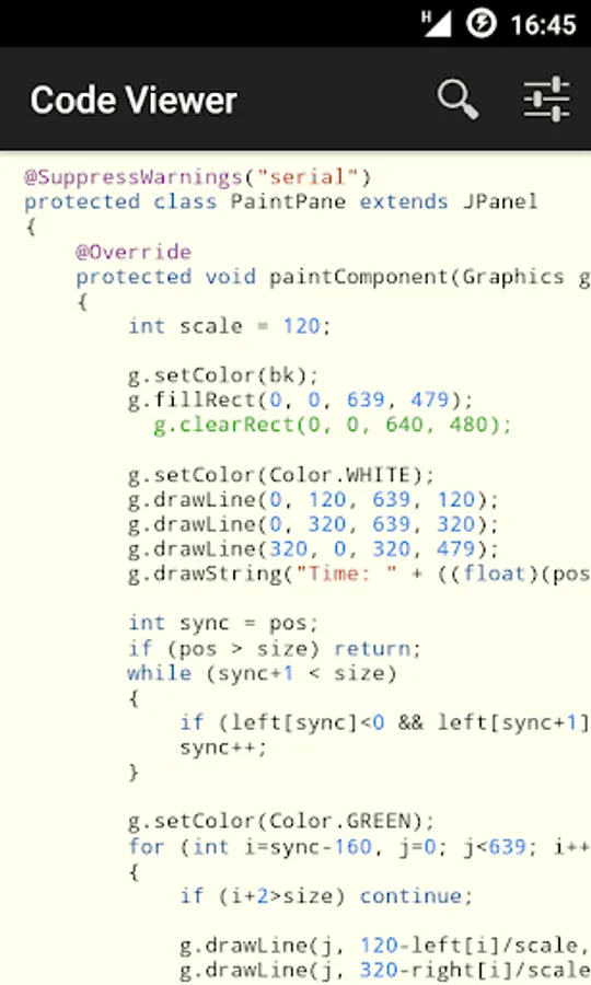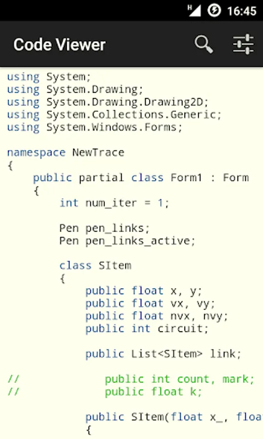 Code Viewer is a program for viewing the source code in Java, C#, C++, etc. It supports syntax highlighting, line numbering, word wrapping and text search. This application is not an editor, it is just a viewer.