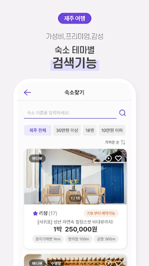 ● Easy, convenient and quick reservation of emotional accommodations in Jeju Island, such as living for a week, living for 15 days, living for a month, etc.