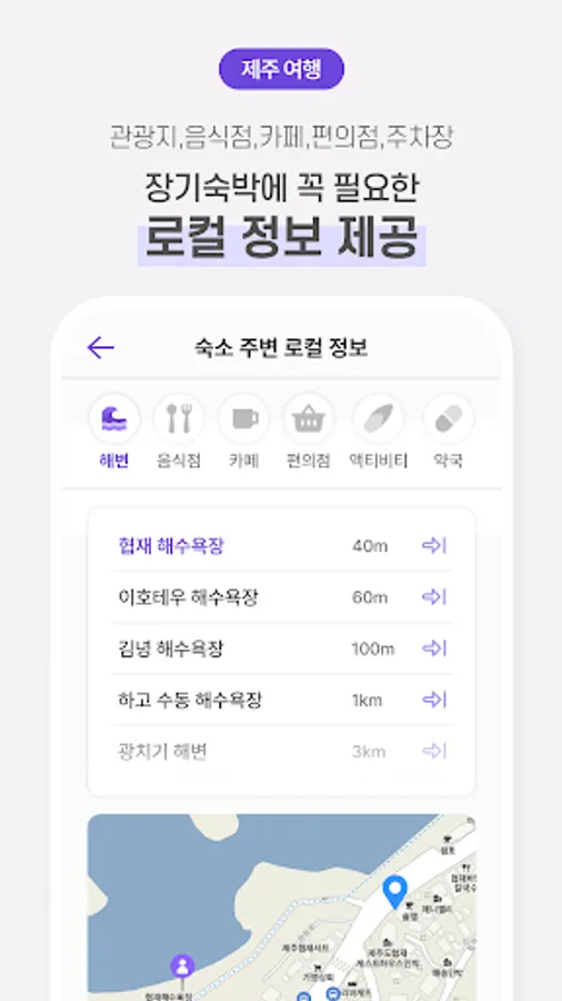 ● Are you curious about the beach near your accommodation? Local information based on the location of accommodations in Jeju Island can be checked OK. You can easily check "beach, convenience facilities, restaurants", etc. in order of distance around your accommodation in Jeju Island