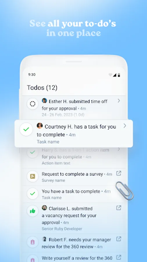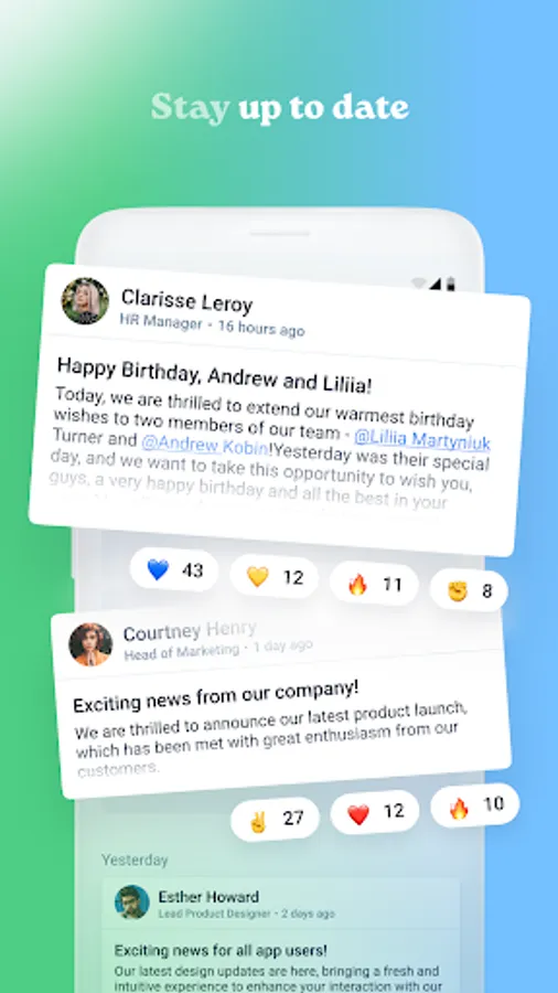 - Receive notifications about approval/rejection time off requests and new tasks