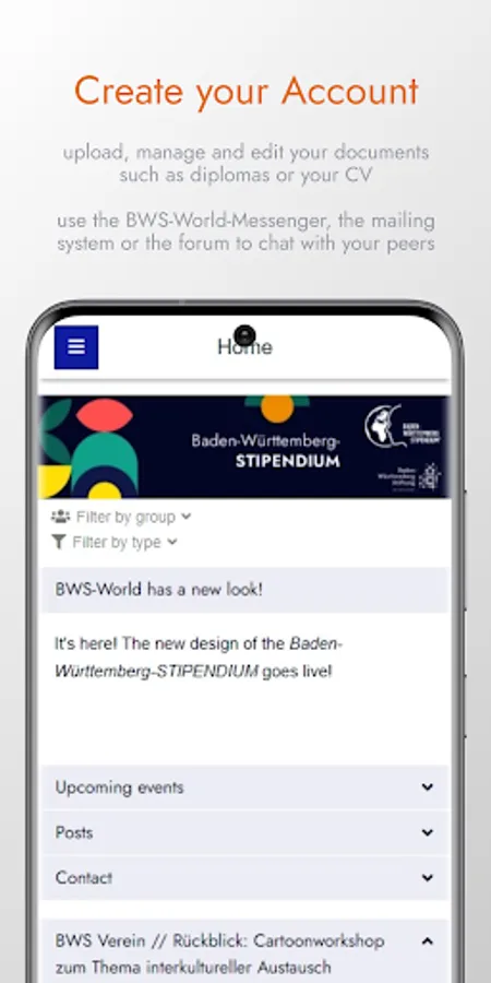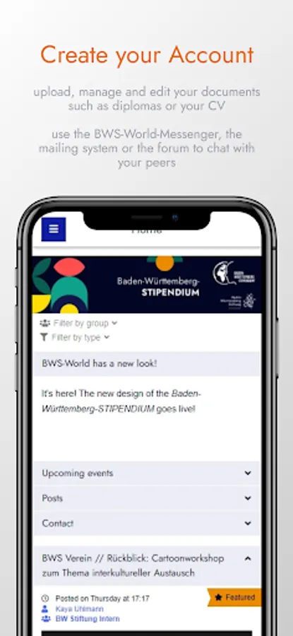 From now on, thanks to the BWS-World app, all scholarship holders and alumni of the Baden-Württemberg-STIPENDIUM can conveniently exchange ideas while on the go. In addition to handling the entire application process, this exclusive platform has been offering all scholarship holders worldwide many networking opportunities since 2012.