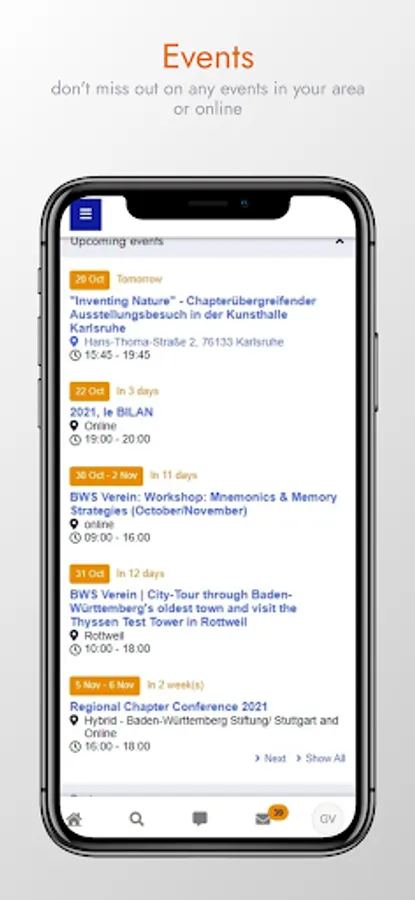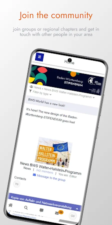 Now you can also exchange information with the scholarship network on the go and find out about current events and offers from the Baden-Württemberg Stiftung. Interact even faster and easier with your network.