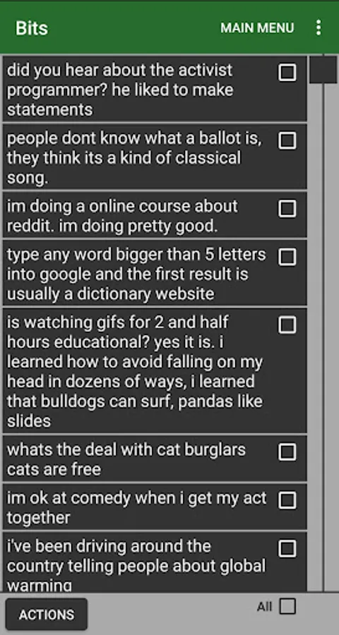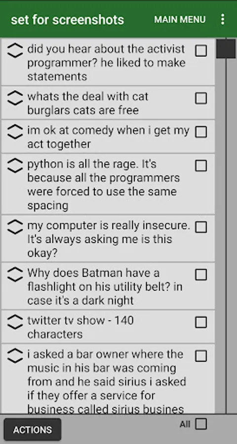 Sets can easily be duplicated or combined. You can select jokes in one set to assign them to another set (they will retain their sequence).