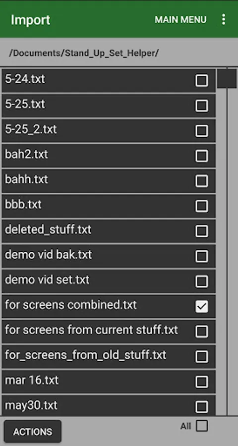 It is easy to start using Stand Up Set Helper. If you already have your jokes in a document, you can import them. If you are worried about trying a new app, know that you will have the option to export your bits back out to a TXT file. See the app's About/Help screen for more info on importing and exporting.