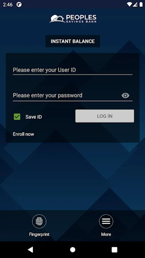 *To use the PSB Mobile Connect app, you must be a Peoples Savings Bank online banking user. Input your Peoples Savings Bank online banking Username and Password to log into the PSB Mobile Connect app. If you have not setup a Username and Password, visit www.bankpsb.com and select “Enroll Now.”