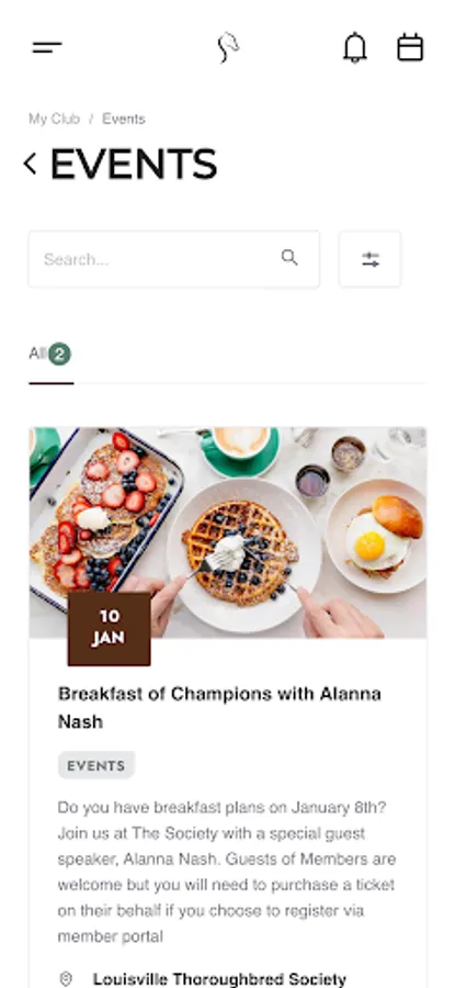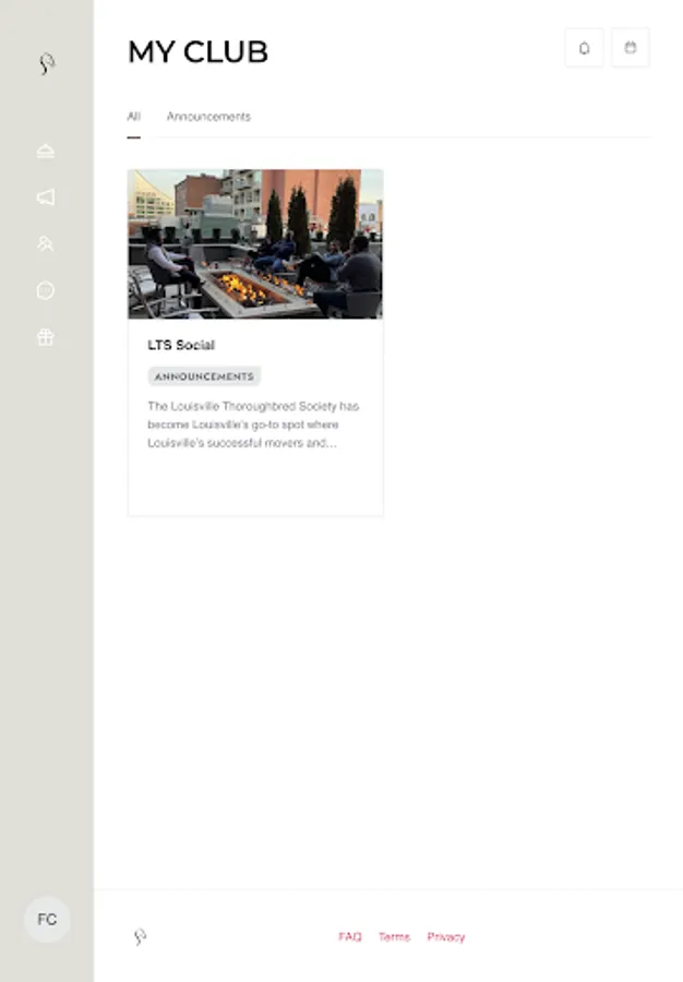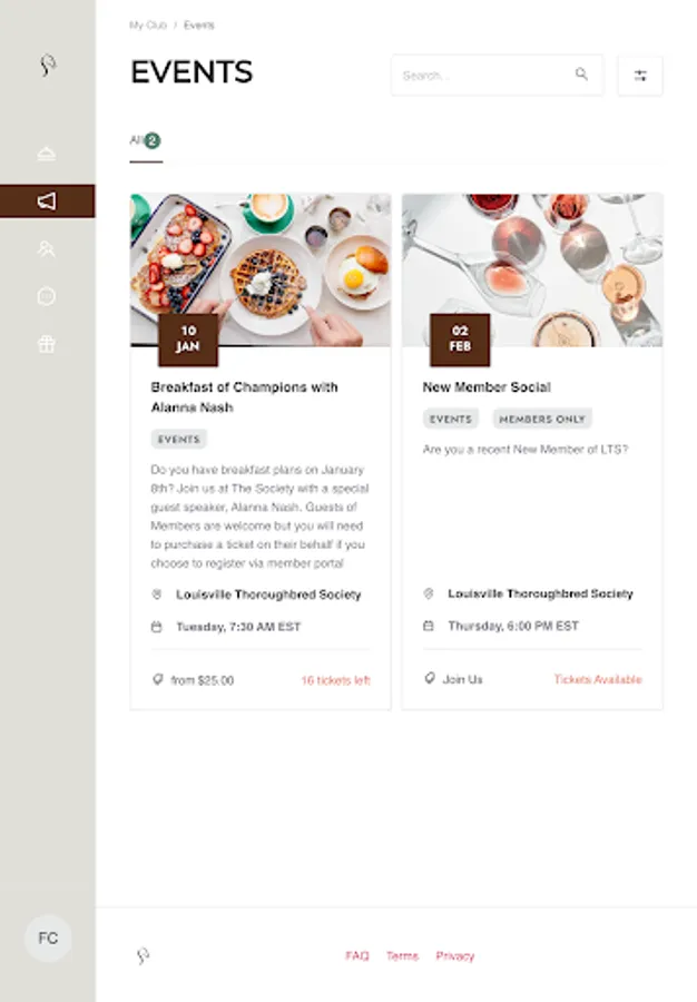 A private mobile app for members of Louisville Thoroughbred Society to browse club information, make reservations, book events, and manage membership.