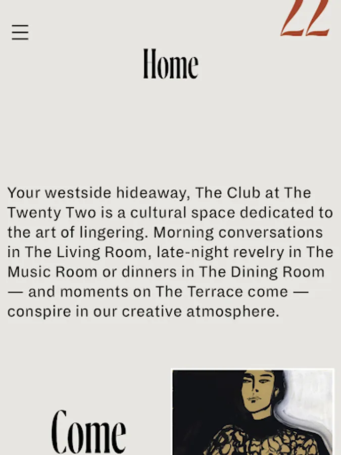 Set in a storied Edwardian manor on Grosvenor Square, The Twenty Two is a hotel and cultural space dedicated to the art of lingering.