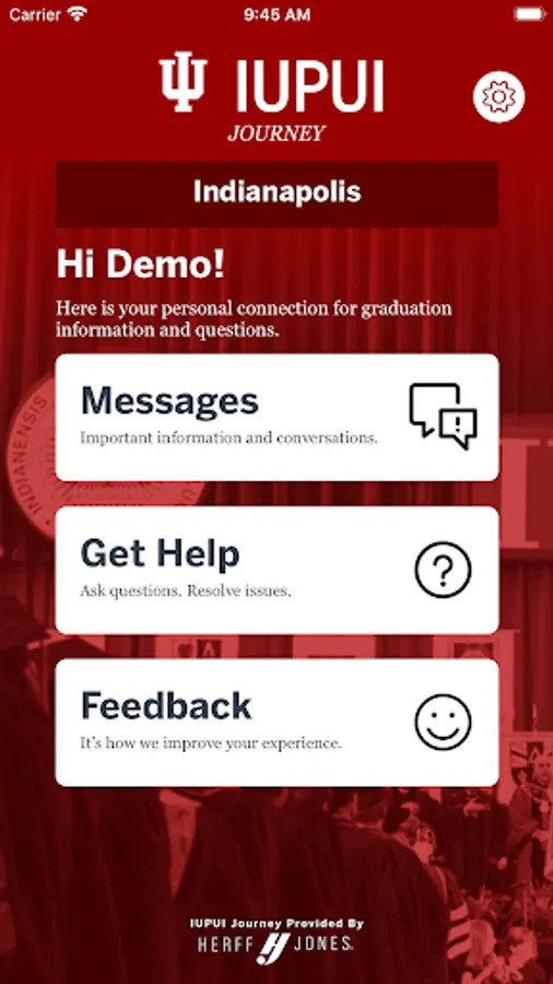 IUPUI Journey is the official, private 2-way messaging app to get personalized information and ask questions, about graduation. You will also get important info from Herff Jones about your graduation cap and gown, announcements, diploma frame and more. All your graduation info in one place where it's easy to find.