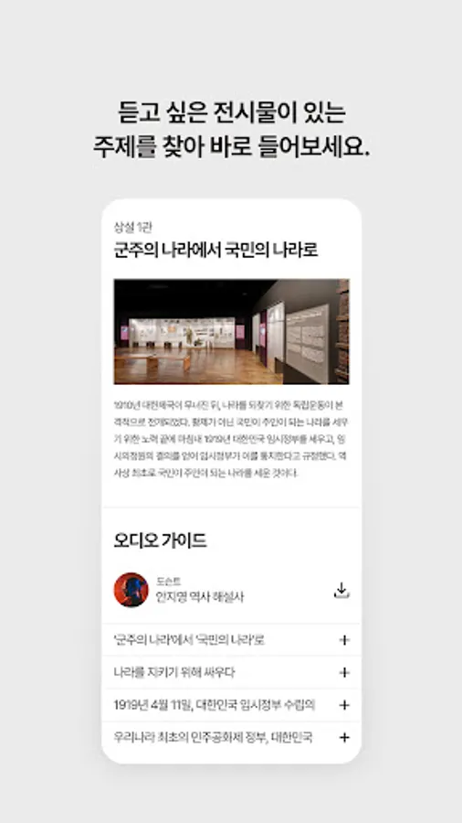 This is an audio guide for the permanent exhibition at the National Provisional Government Memorial Hall.