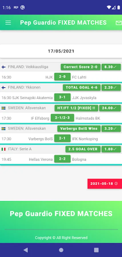 • FIXED MATCHES (Only in Fixed Matches app!)