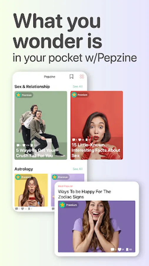 On Pepzine, I share articles that are renewed every day and are enjoyable to read. I make your day better with the messages I send to your phone. It's not enough, I make you laugh, make you think, compliment and surprise you with many different cards on the main page. We experience every emotion together.