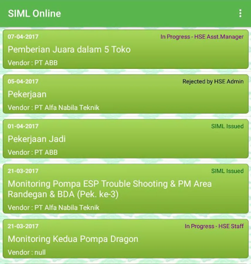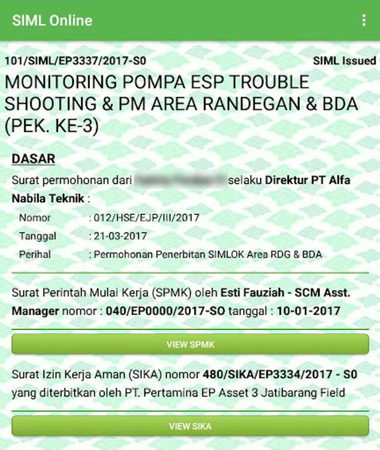 Mobile Application for Approval of Surat Izin Masuk Lokasi (SIML) Online - Used for HSSE Division of PT. Pertamina EP Asset 3 - Jatibarang Field.