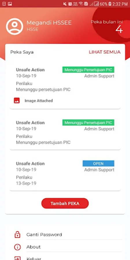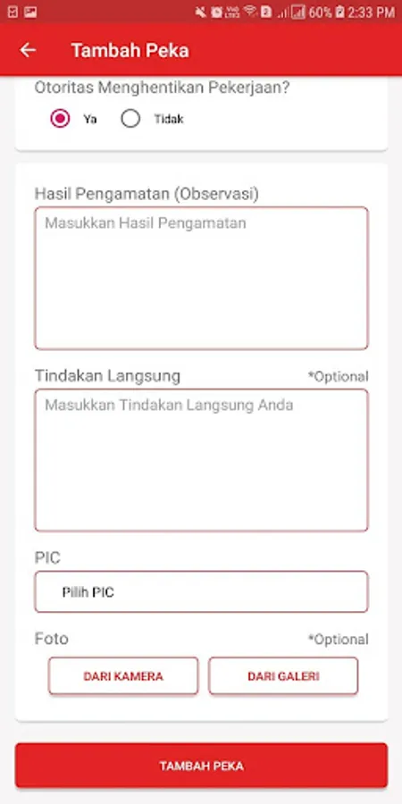 PEKA DIGI is a work safety observation reporting application (PEKA) within PT. Pertamina EP Cepu ADK.