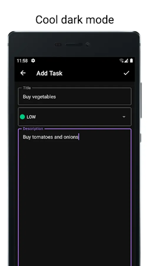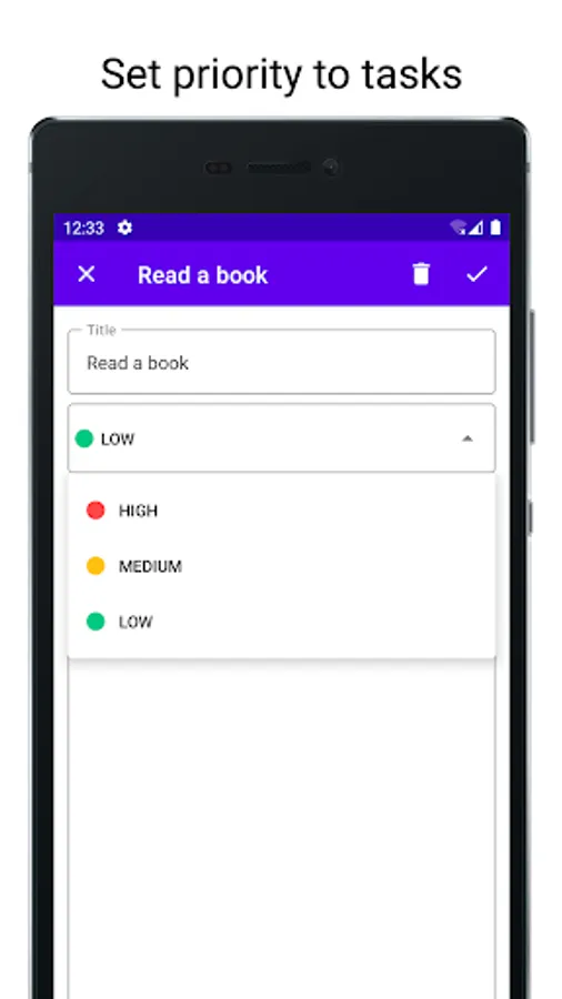 Are you looking for a way to be more productive and keep track of your daily tasks? Then the ToDo List is the perfect app for you. With a sleek and user-friendly design, you can add tasks with a description and high, medium, or low priority. Additionally, the dark theme option allows you to work on your task list even in low-light environments. Download the ToDo List today and start effectively improving your productivity