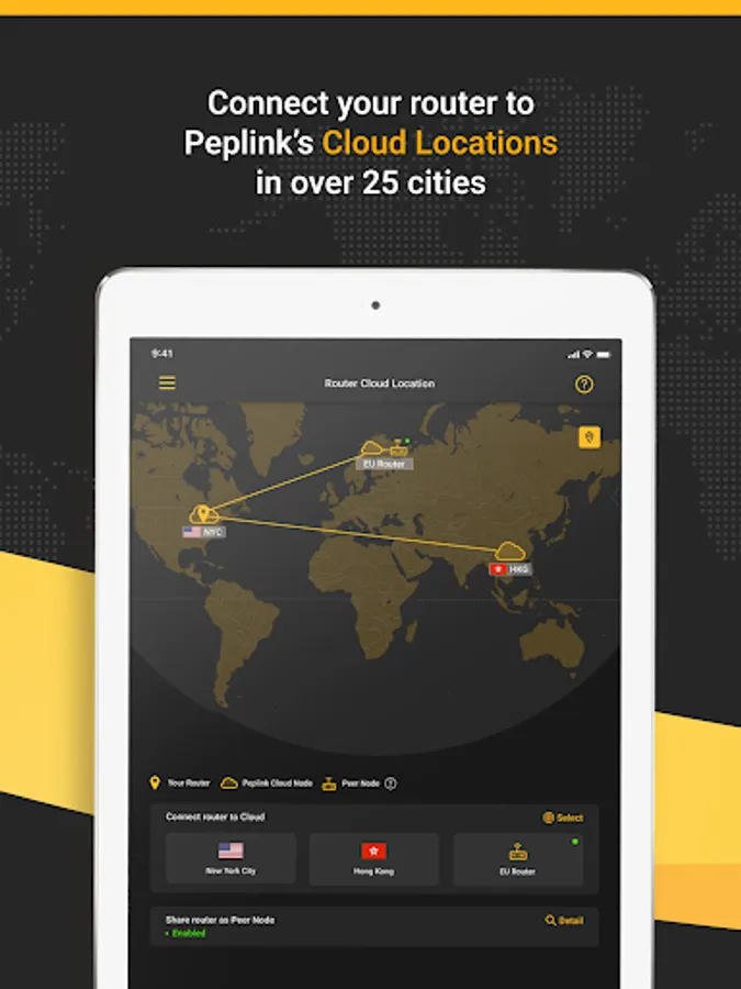 Connect your router to a maximum of 3 Cloud Locations in over 25 cities to protect your connection