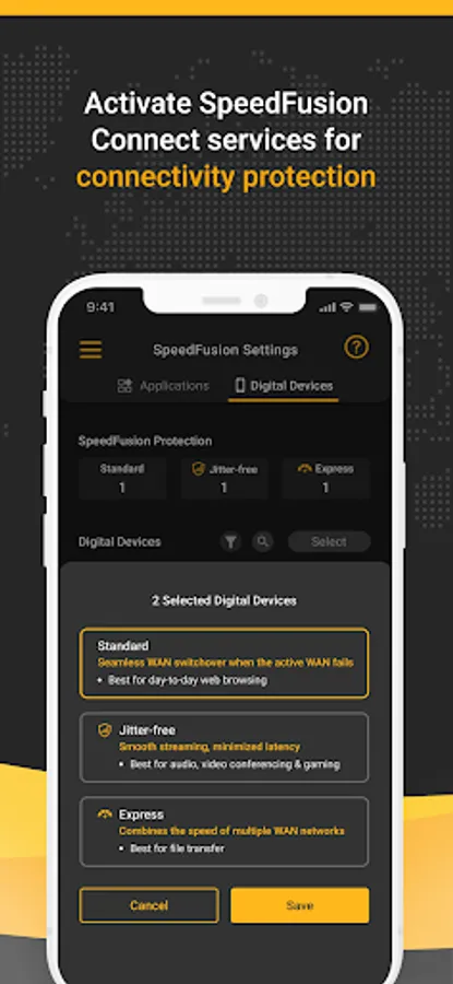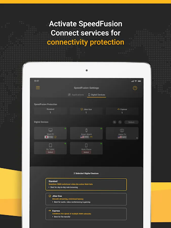 - SpeedFusion protects the quality of your connection through 3 modes of protection to support your daily needs: