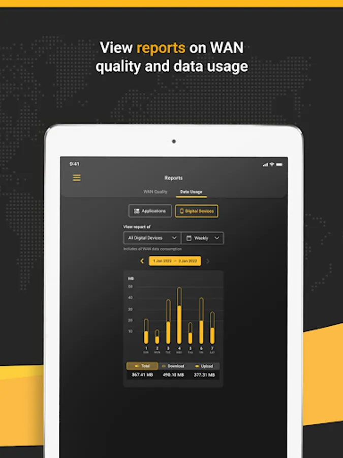 - View reports for WAN quality and data usage