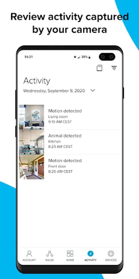 - Capture and view HD video recordings of anything you missed while you were away with our available cloud video storage.
