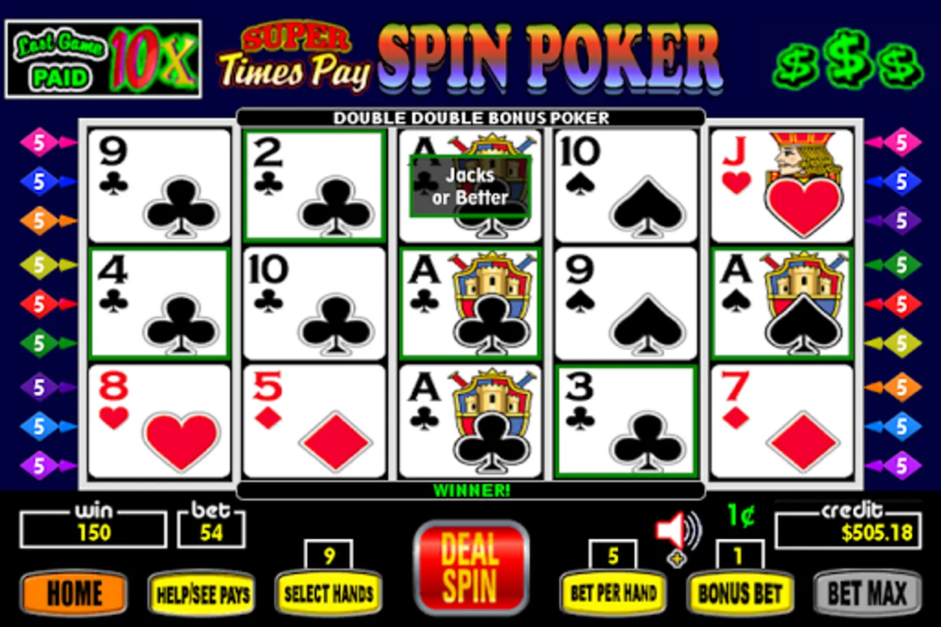 SUPER TIMES (X) PAY SPIN POKER