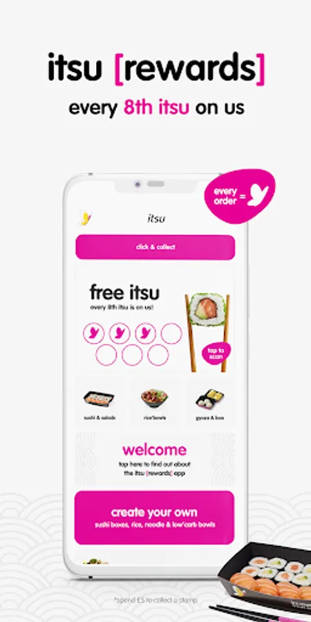 Collect [rewards] every time you visit your local itsu restaurant and enjoy a free itsu.