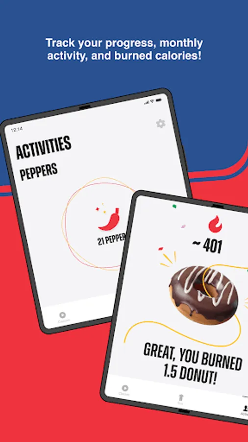 Track your progress over time, both during your workouts and in your user profile. The heat zones visualize your intensity compared to previous intensity levels in your workout history and encourage you to improve your fitness level over time. Try to reach the red zone during your workouts to challenge yourself and get the most out of your training. Collect Pepper points for your activities and compare yourself to your friends.