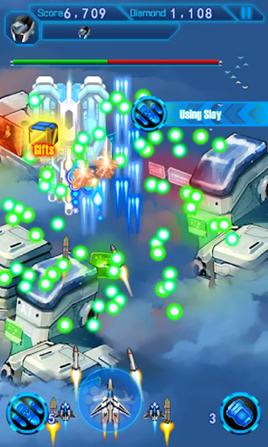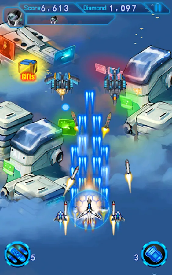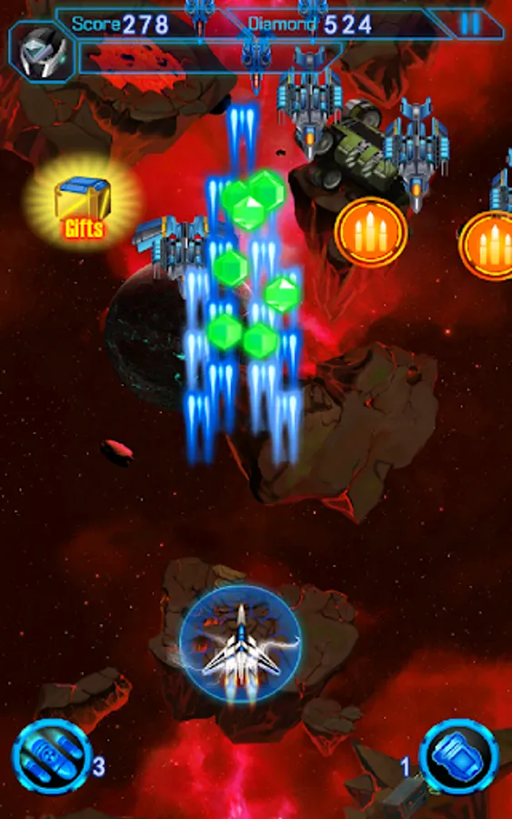 The game also offers you more fighter aircrafts. You can get gems by fighting, and use them to upgrade your fighters.