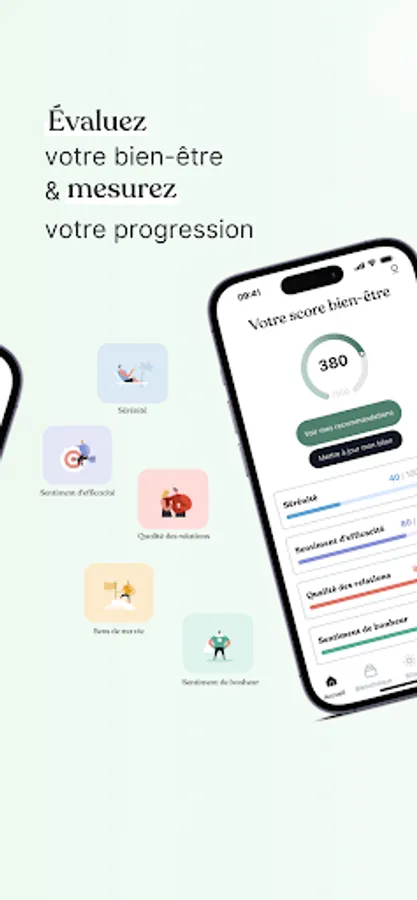 A scientifically valid mental well-being questionnaire allows you to assess your level of well-being: serenity, feeling of efficiency, quality of relationships, feeling of happiness, etc.