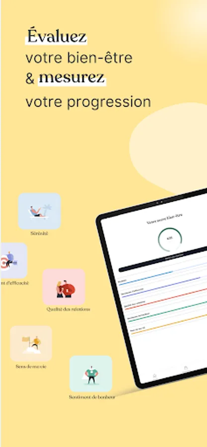 Measure your progress by following the evolution of your well-being over time by answering the questionnaire at any time