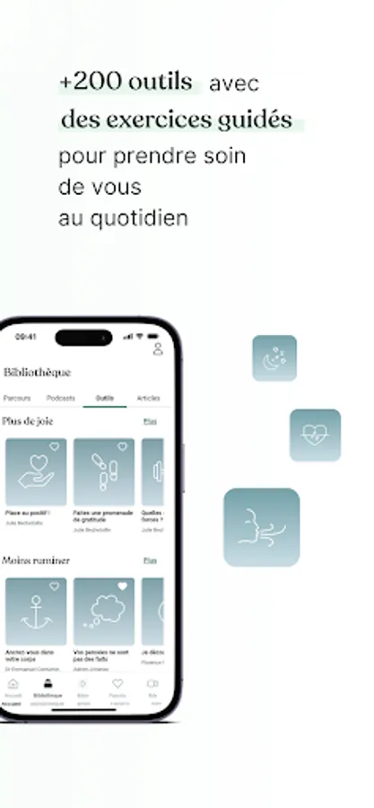 Personalized courses with +200 tools that give you the keys to feeling better in your sneakers: be more serene, sleep better, strengthen your resilience, develop your personal strengths...