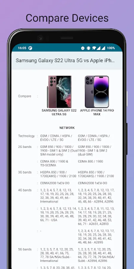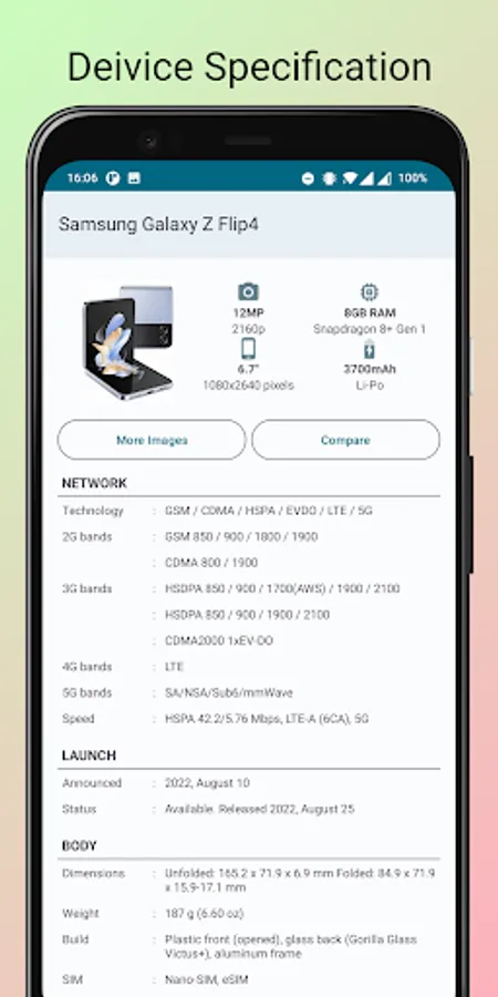 Phone Specification Screenshots