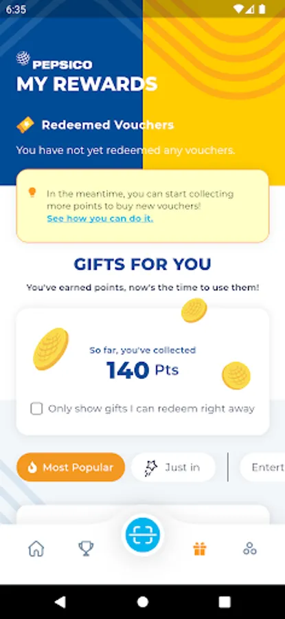 The PepsiCo Joy app is your perfect companion for all things fun. Start collecting your points now and exchange them for exclusive and fantastic rewards! Coupons, tickets, discounts, games, free subscriptions, and valuable gifts are renewed every day.