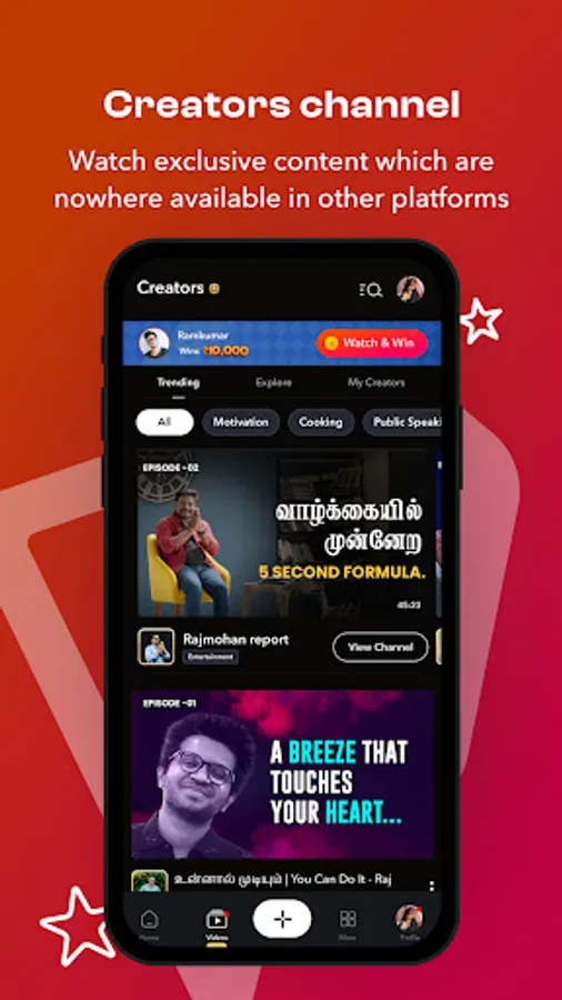 Enjoy free and premium quality 3 to 10 minutes length videos of trendy creators across different topics from infotainment to entertainment. Discover new content by browsing through many video categories or searching for specific creators and topics.