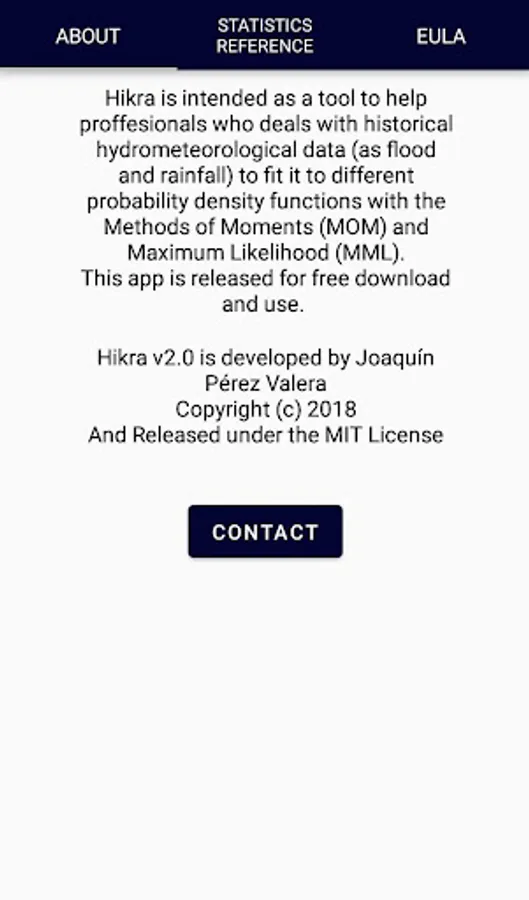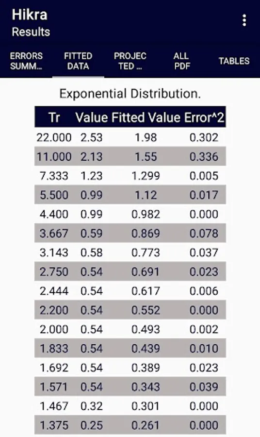 Hikra is intended to fit hydrometeorological data to different probability density functions (pdf) as Normal, LogNormal (2 and 3 parameters), Exponential, Gumbel and Gamma (2 and 3 parameters). Also estimates values for different return periods after the data are fitted to a pdf.