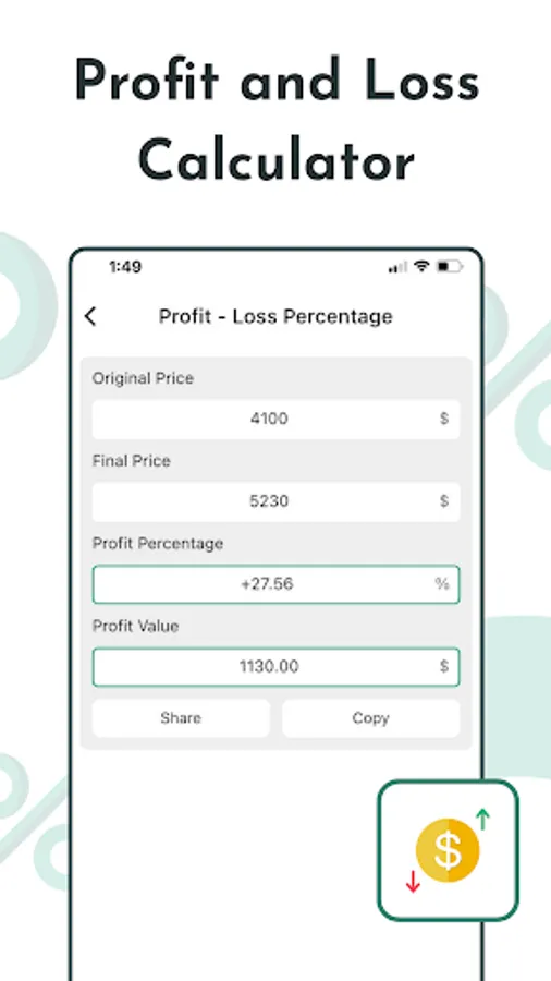 Do you remember the formula to asset depreciation, current ratio, or rate of return on investment? Do you know how to calculate discounts quickly? If you’re a teacher or student, you might want to transform your grades into percentages. Our percentage calculator for money will make your daily life, running a business, and investing much easier. We have created ready-made formulas for everyday use. You can use our percentage calculator for money as your daily calculator. It’s also handy to convert some numbers into percentages. Running a business? Calculate your profit or loss with our profit calculator function!