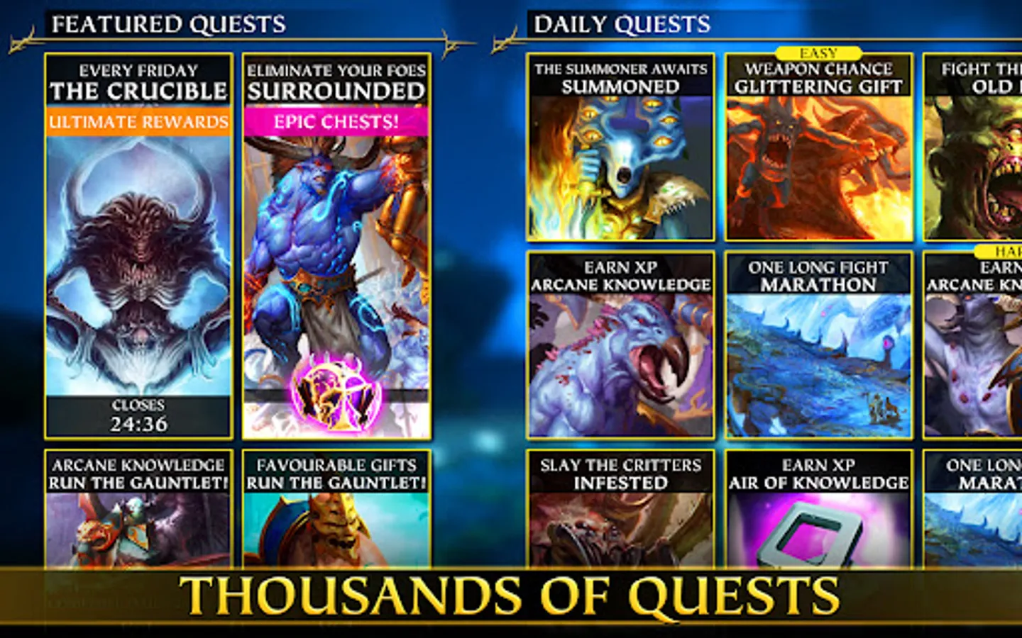 Based on the hit Age of Sigmar board game from Games Workshop. Fight the forces of Chaos in the realm of the Gaunt Summoner! Quest with your Champions in his Silver Tower to find the pieces of his Talisman.