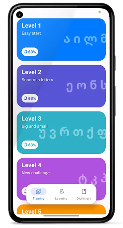 Feel the progress: With each successfully completed level, you will get closer to the full mastery of the Georgian language.