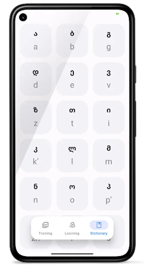 Simple interface: Convenient and understandable cards with the letters of the Georgian alphabet. You will not be distracted by complex settings - just open the application and start the path to language literacy.