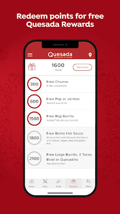 Order for Pick Up or Delivery, earn points, get rewarded! Earn 10 points for every dollar spent before tax and redeem for free food or drinks. Enjoy rewards like delicious churros, Burritos, Quesadillas or Tacos!! The more you order, the more points you get.
