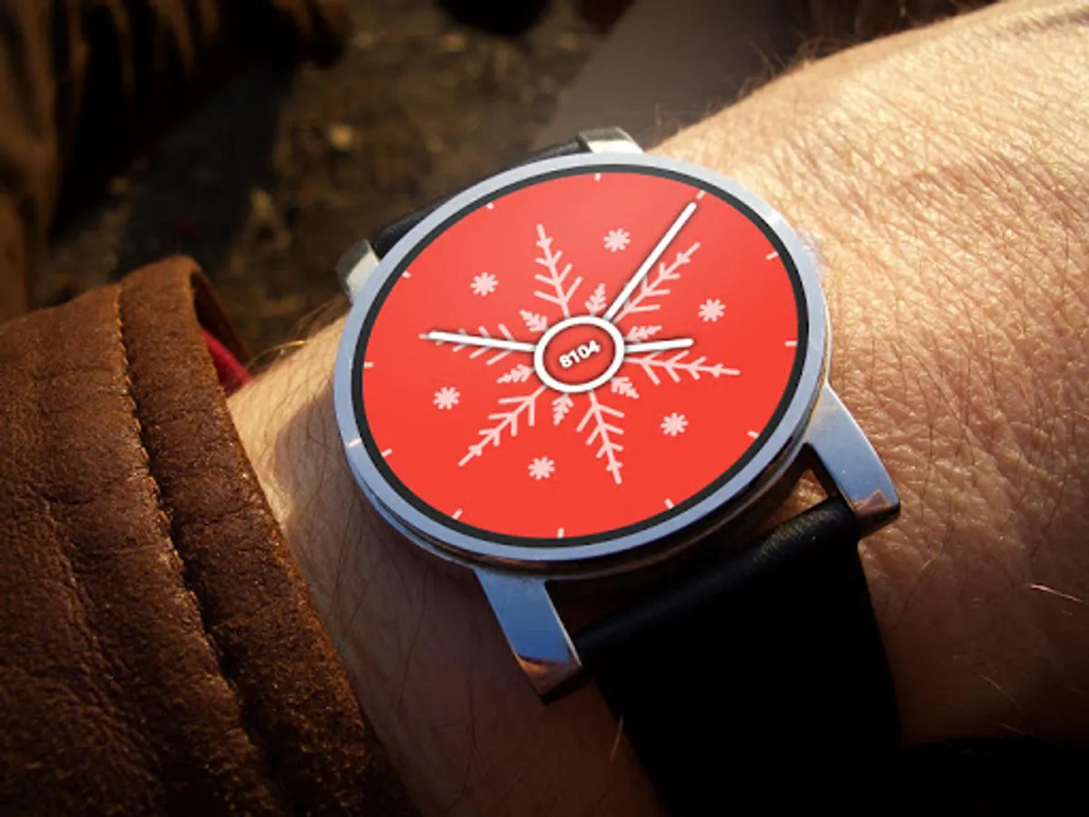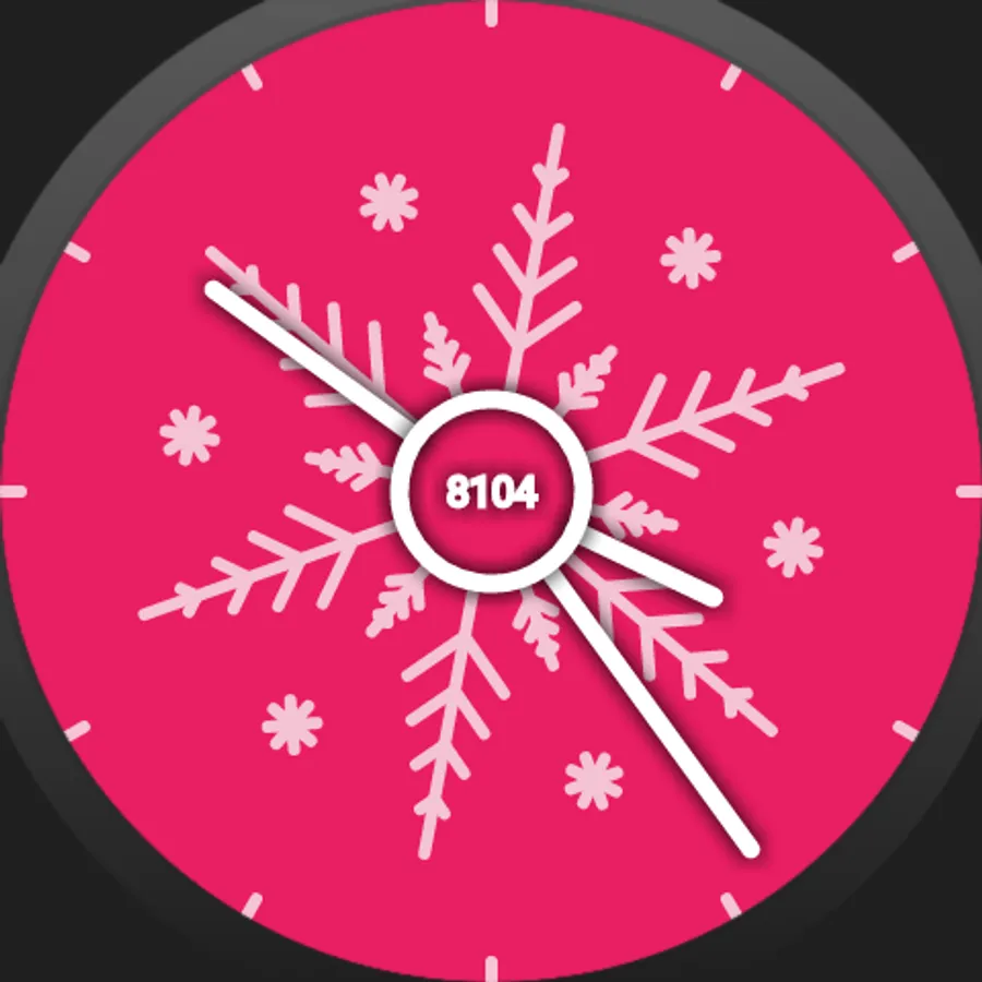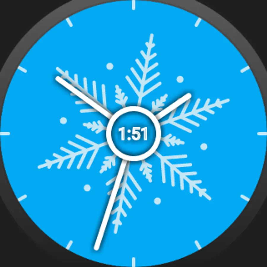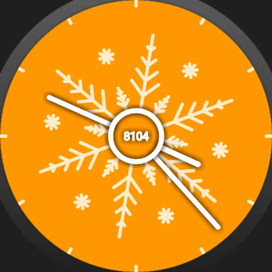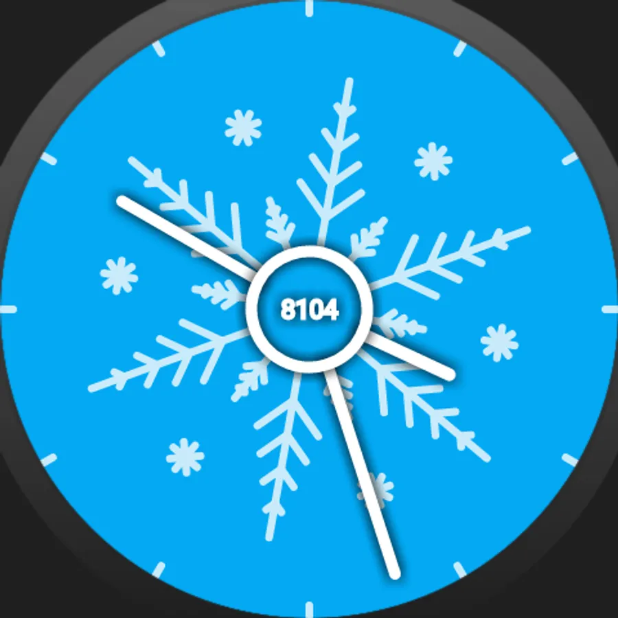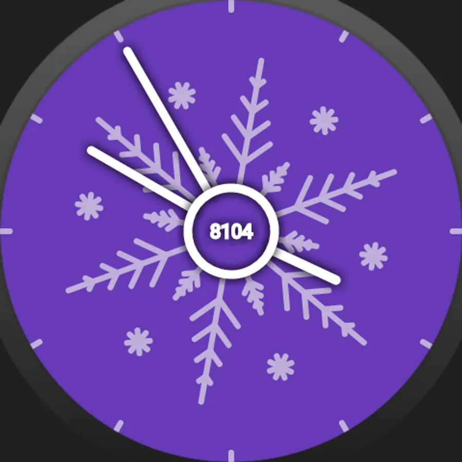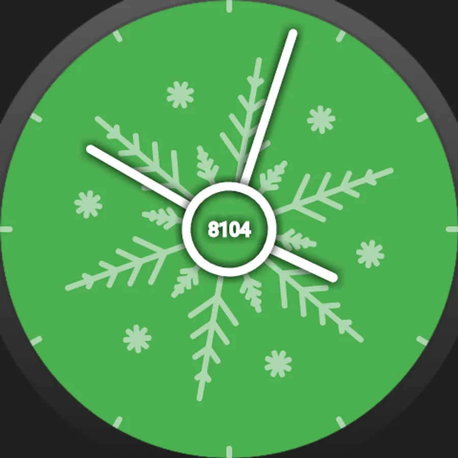 This analog watchface features a snowflake that changes shape as you take more steps and get fit! Or switch to the time-based watchface so you can stay inside, eat some cookies, and watch the snowflake change shape as time changes. You can even customize the background color!