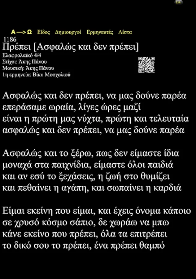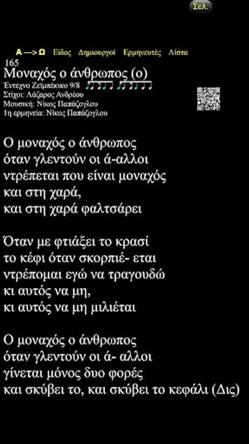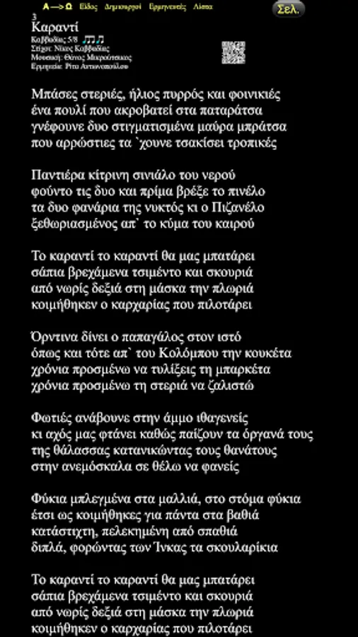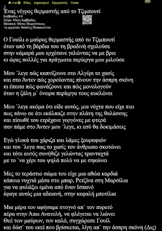QR-code links for each song that, when clicked, open the corresponding song on YouTube.