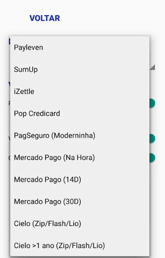 Machine Calculator: SumUp, iZettle, PagSeguro, Pop Credicard, Mercado Pago, Cielo, Stone Mais, Rede, Rede P.F., Rede P.J.
