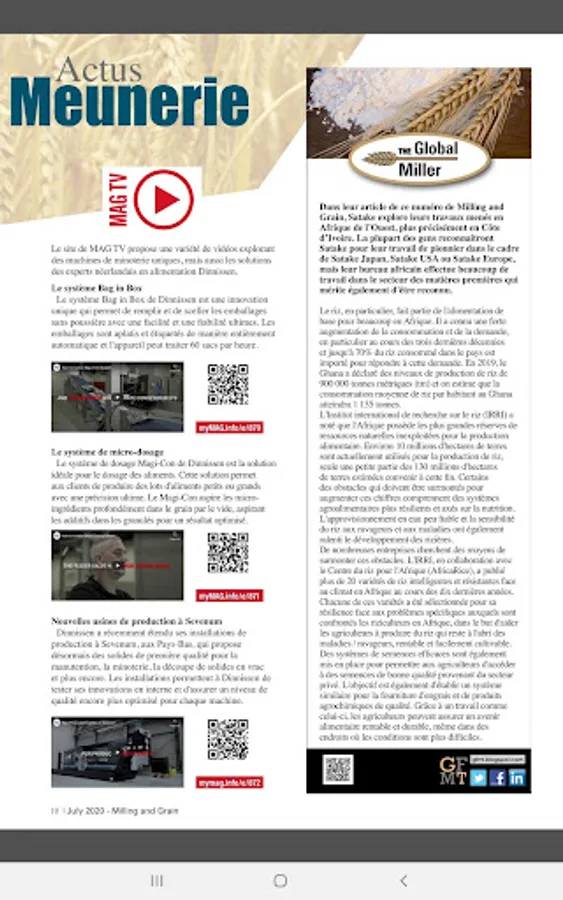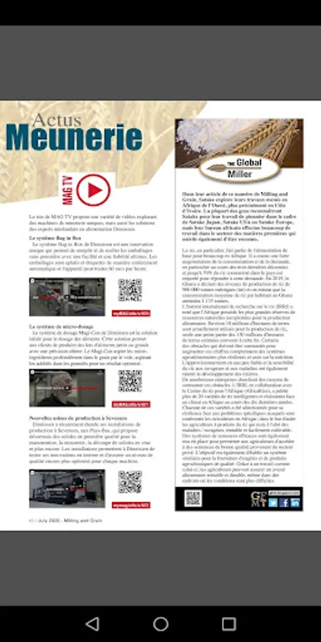 Milling and Grain is a monthly magazine covering all aspects of milling grain for food and feed production. Milling and Grain was first published as "Milling" in 1891 and is today the oldest, still published magazine serving the milling industry in the world. This is the app of the French edition of Milling and Grain. Every two months the magazine is published and printed in French, Spanish, Arabic, Chinese and Turkish. You can subscribe to these different editions (including the English edition) separately and the digital versions are available in pdf format for subscribers.