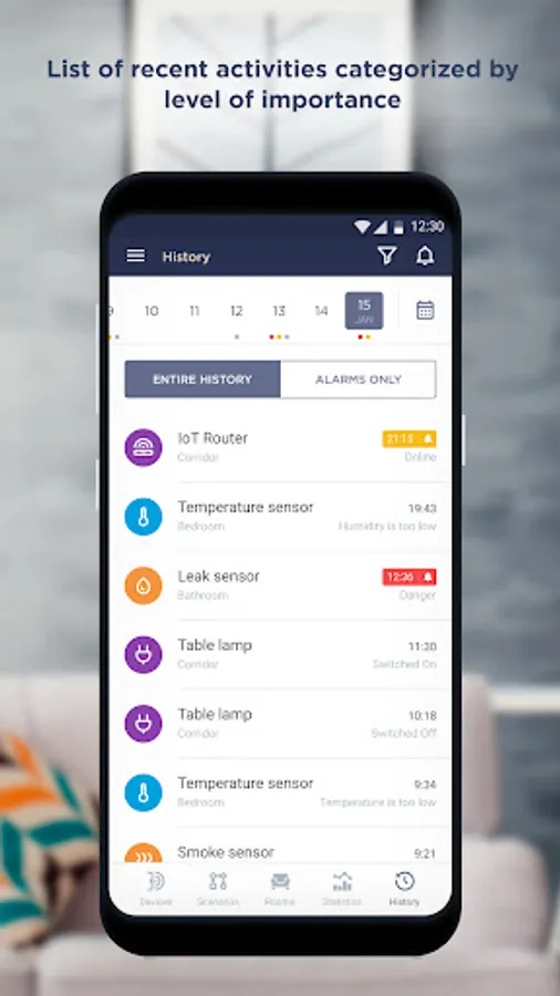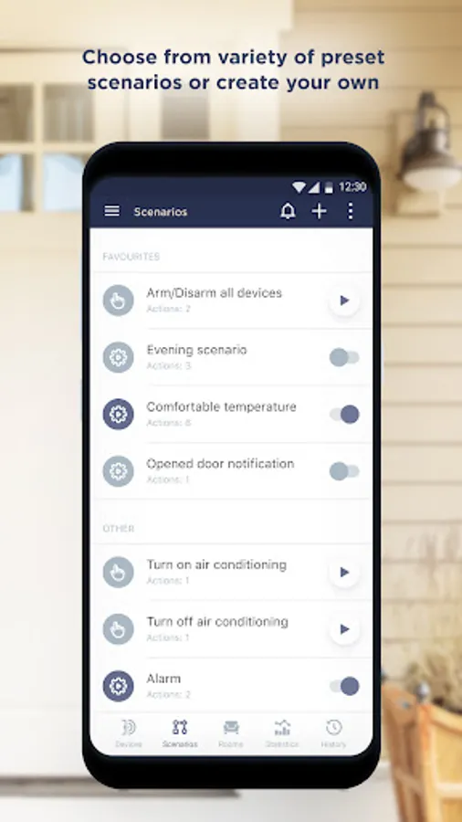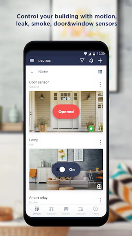 • add to your Smart Home Security system any smart Wi-Fi devices – sensors, locks, household appliances, sockets, IR remote controls, air conditioners, heaters, video cameras and others,
