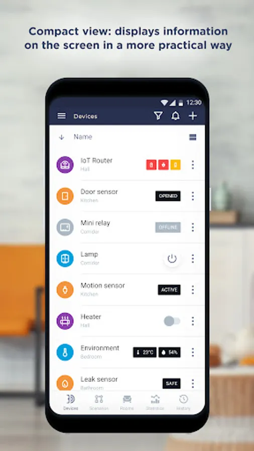 • remotely control the situation in the premises by collecting all your Wi-Fi devices into one Smart Home system,
